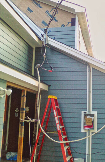 Fixing non-compliant or unsafe points of attachment, including bracket replacements, height adjustments, proper weatherhead installation and secure mounting to building structures.
